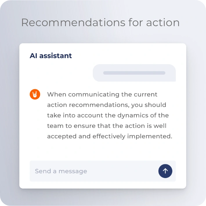 Our AI Assistant bridges modern leadership with intelligent team development. Leadership questions are answered directly in the AI chat, while data-driven recommendations for team leadership are available in real time.