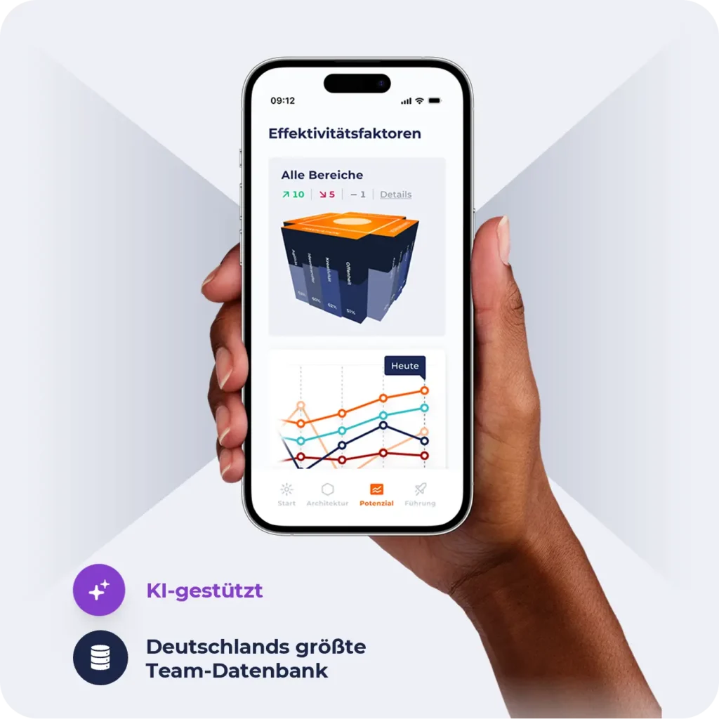 Das KI-gestützte Führungstool analysiert mithilfe intelligenter Teamdaten systematisch Verbesserungspotenziale und liefert konkrete, praxiserprobte Handlungsempfehlungen – wissenschaftlich fundiert und nachhaltig.