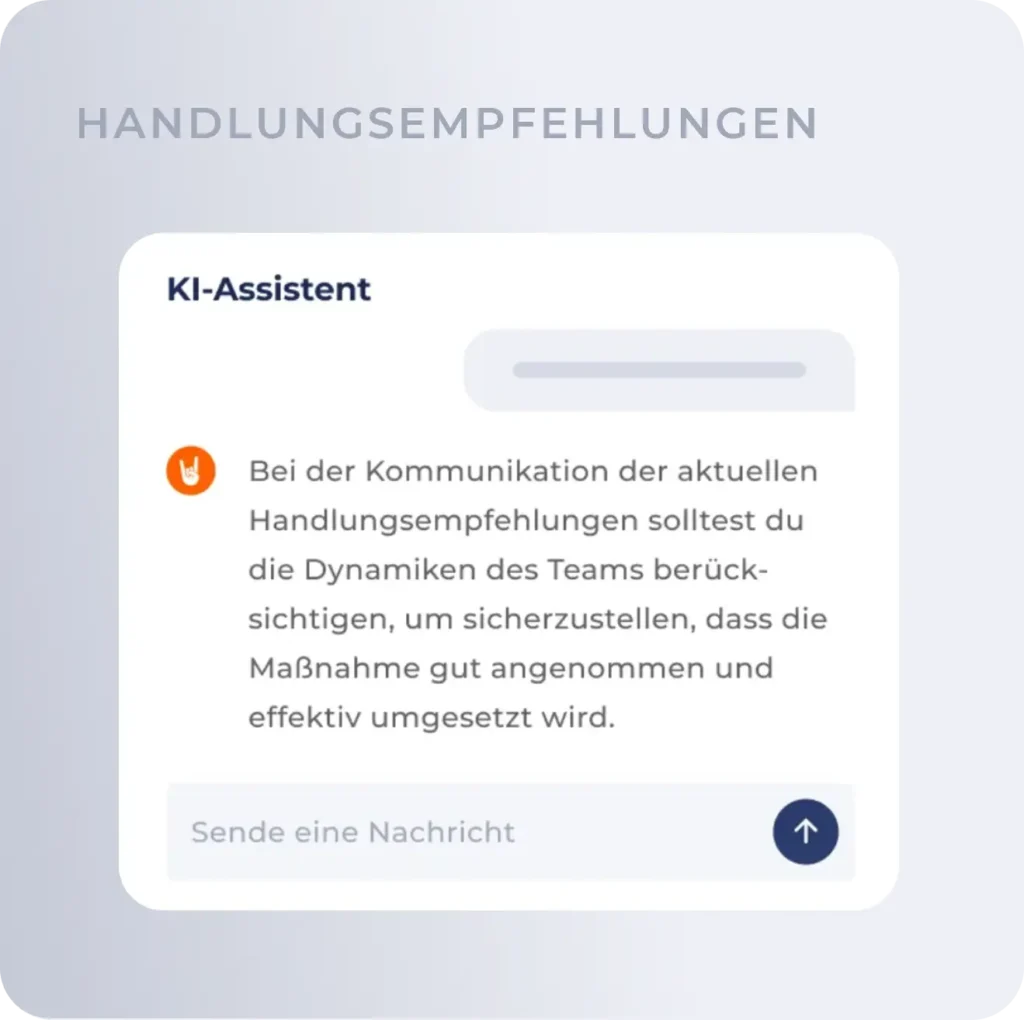 Der KI-Assistent liefert gezielte Handlungsempfehlungen und begleitet Führungskräfte kontinuierlich via Chat.